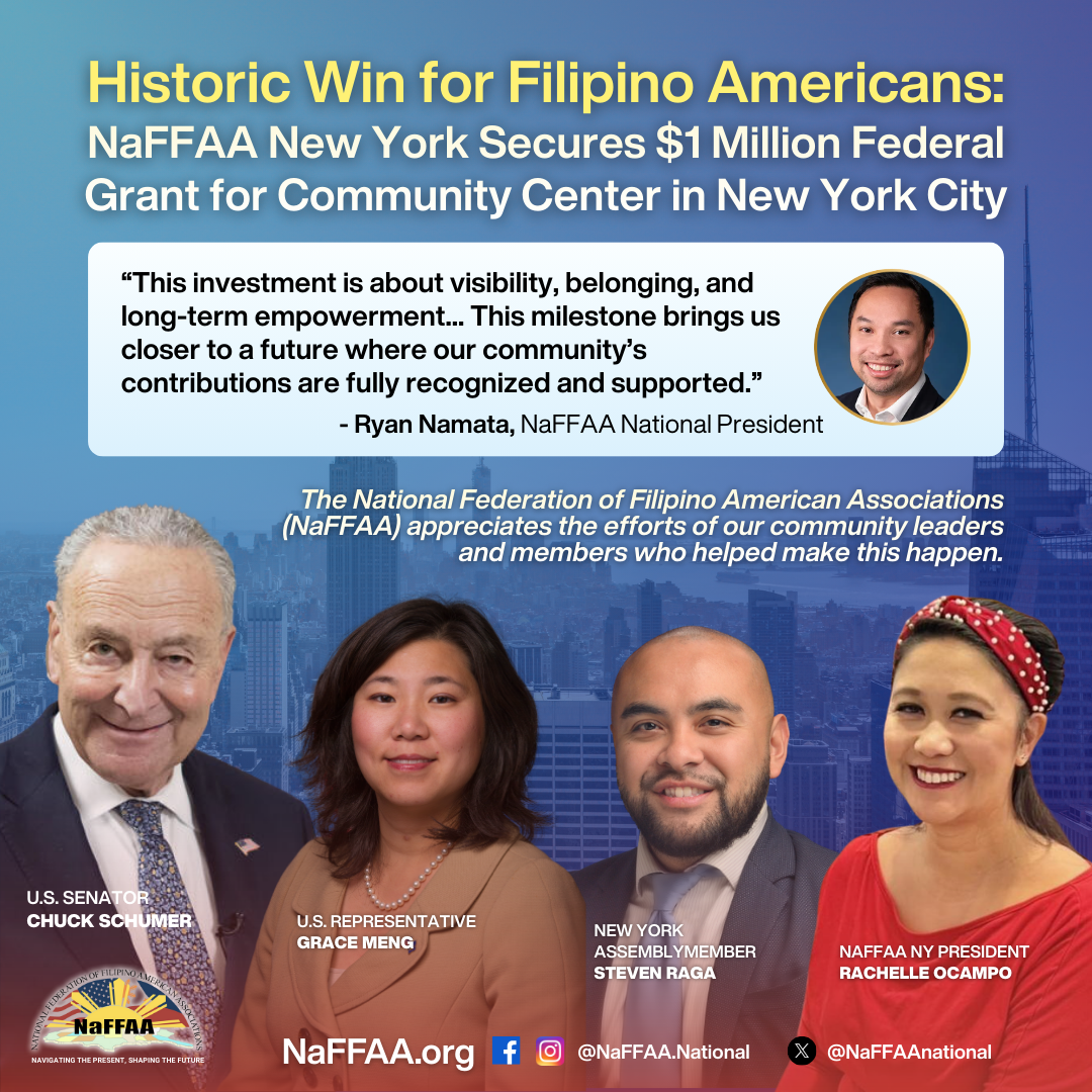 Washington, DC — The National Federation of Filipino American Associations (NaFFAA) has announced its award of $1 million in Federal Community Project Funding to support the continued development of a Filipino American Community Center in New York City, marking a historic milestone for the Filipino American community.