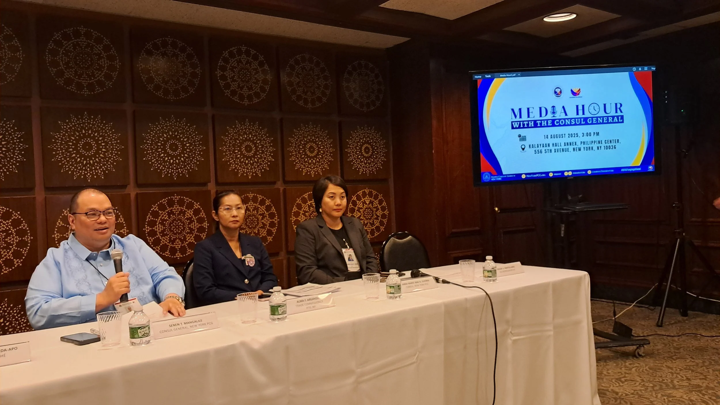 New York - Philippine Consul General in New York Senen Mangalile formally introduced new officials of the PCGNY and Trade and Tourism attaches in the quarterly Media Hour with members of the Filipino American media on August 15, 2025.